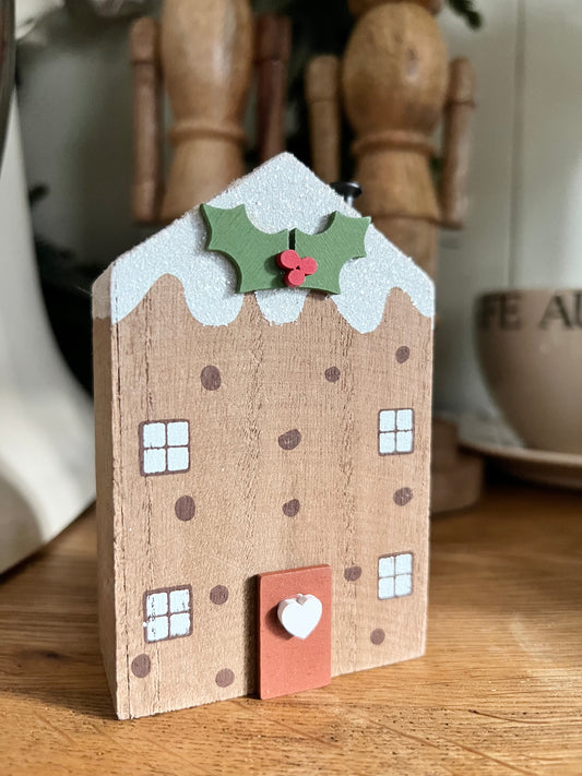 Christmas Pudding Wooden House Block