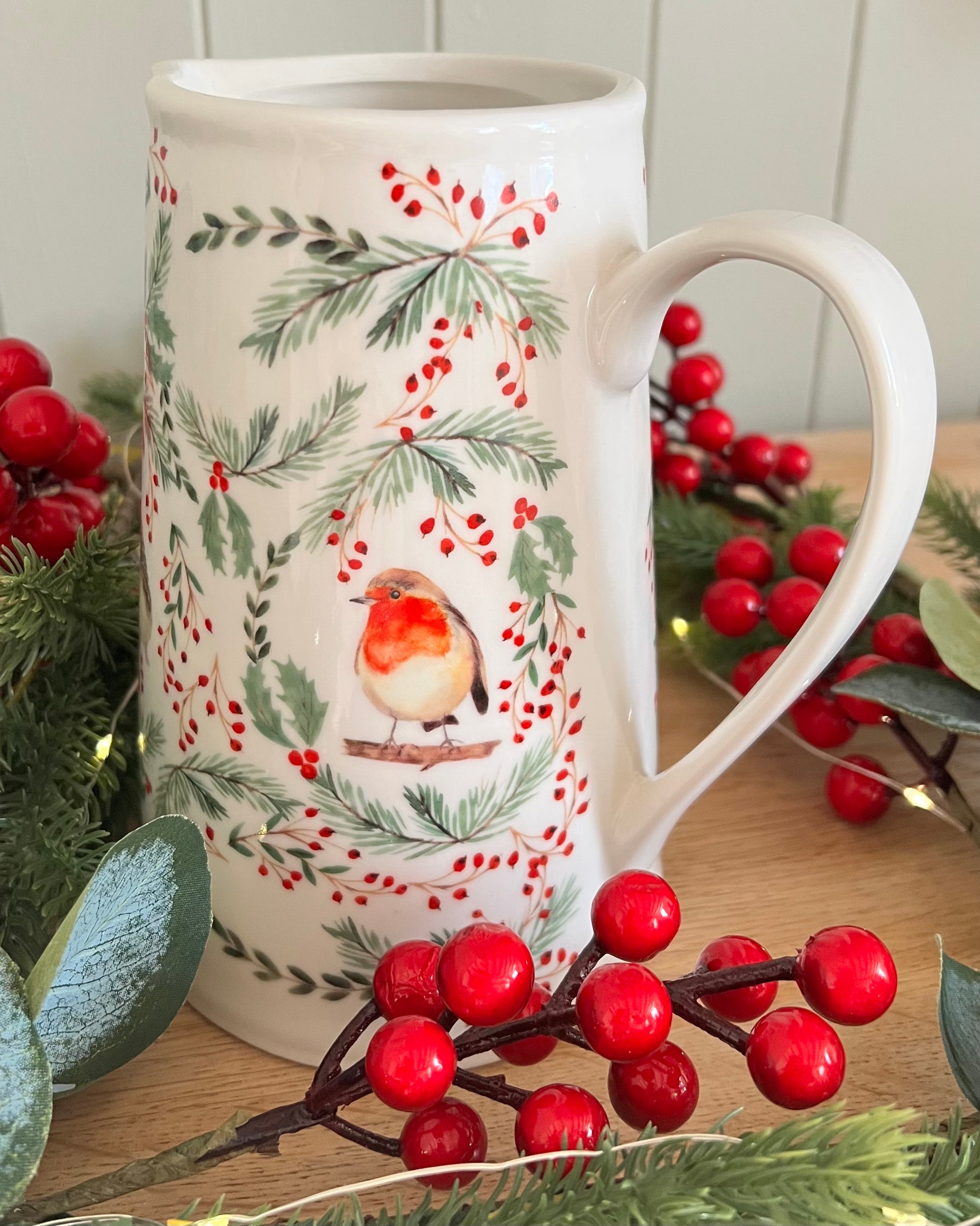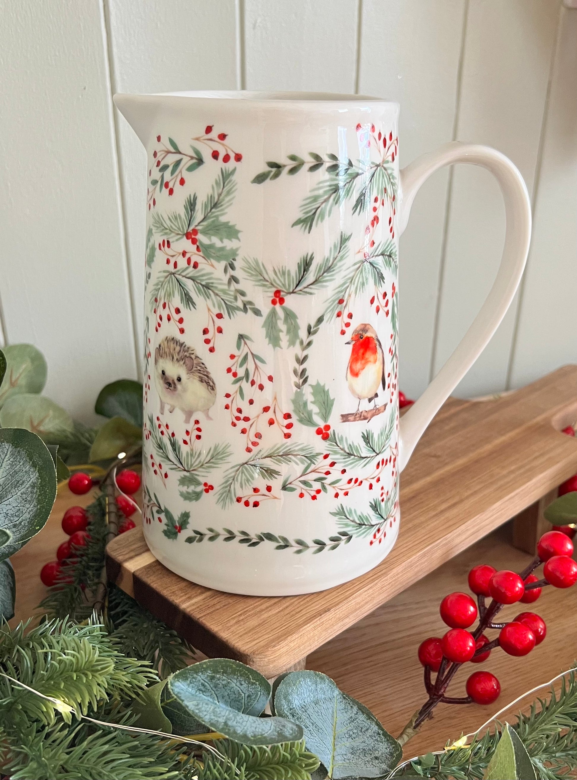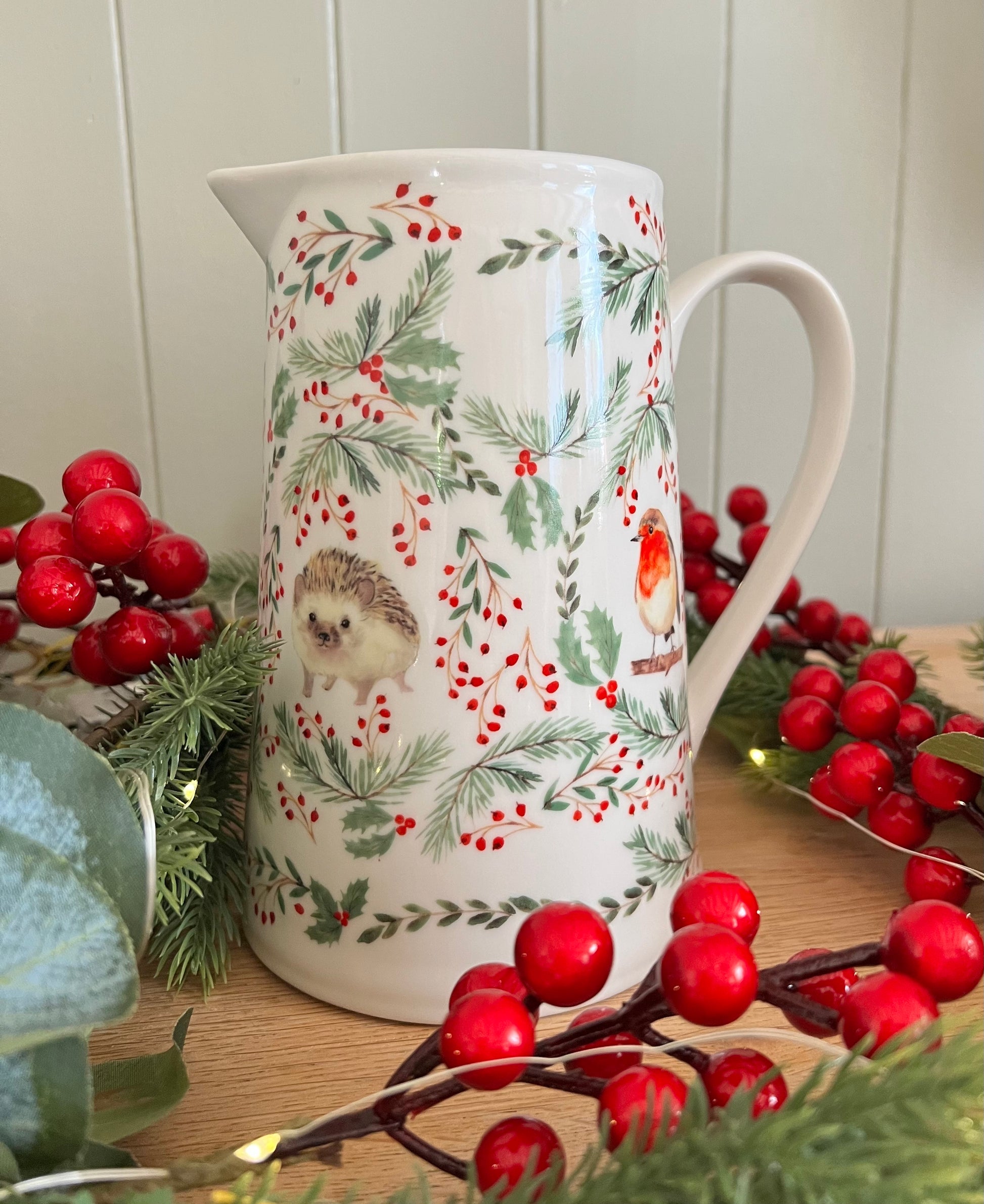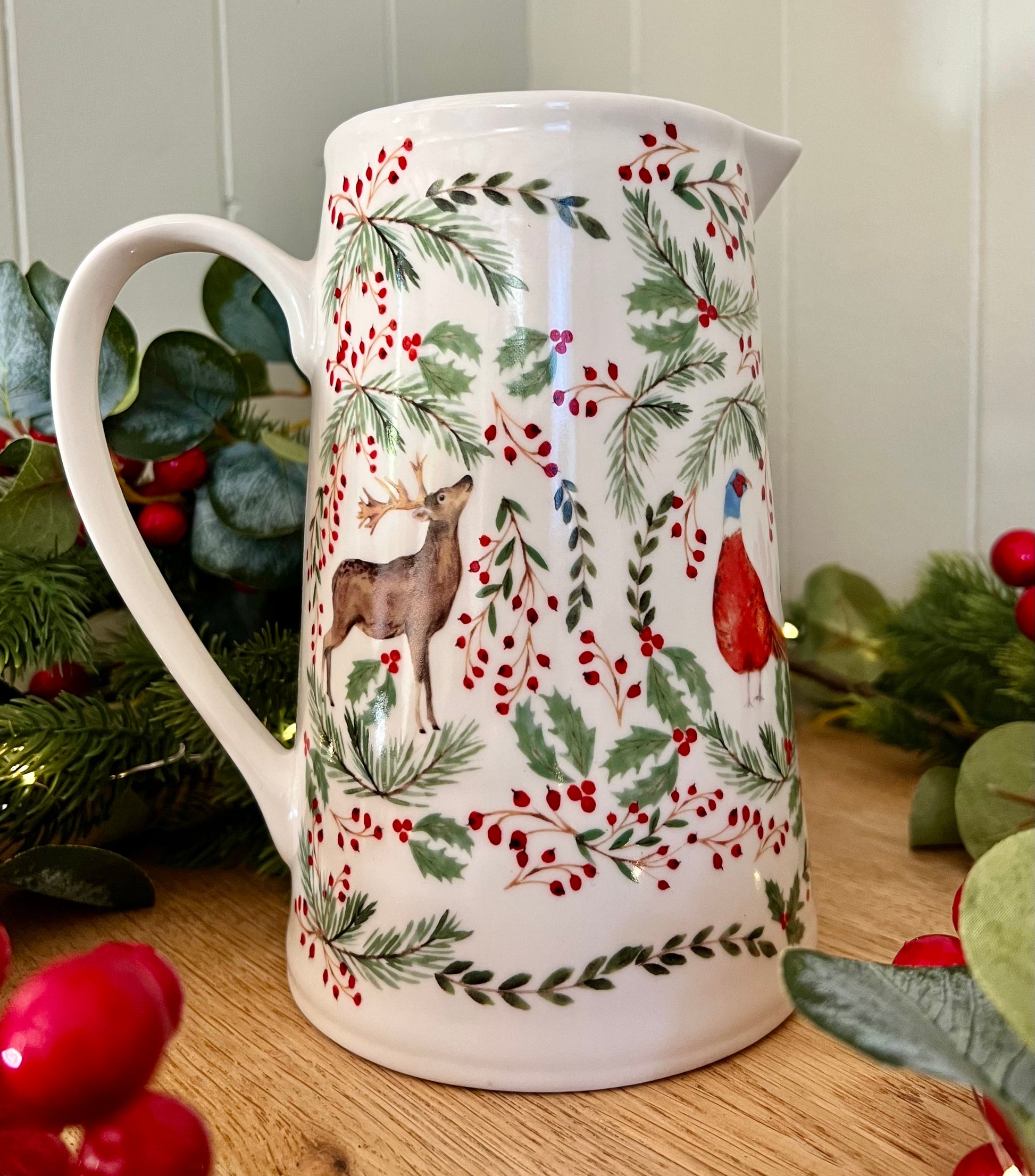 A gorgeous Christmassy folk jug featuring beautiful woodland animals and holly sprays. A traditional style that is practical and appealing. We think this looks great displayed on a sideboard or used within the kitchen over the festive period.