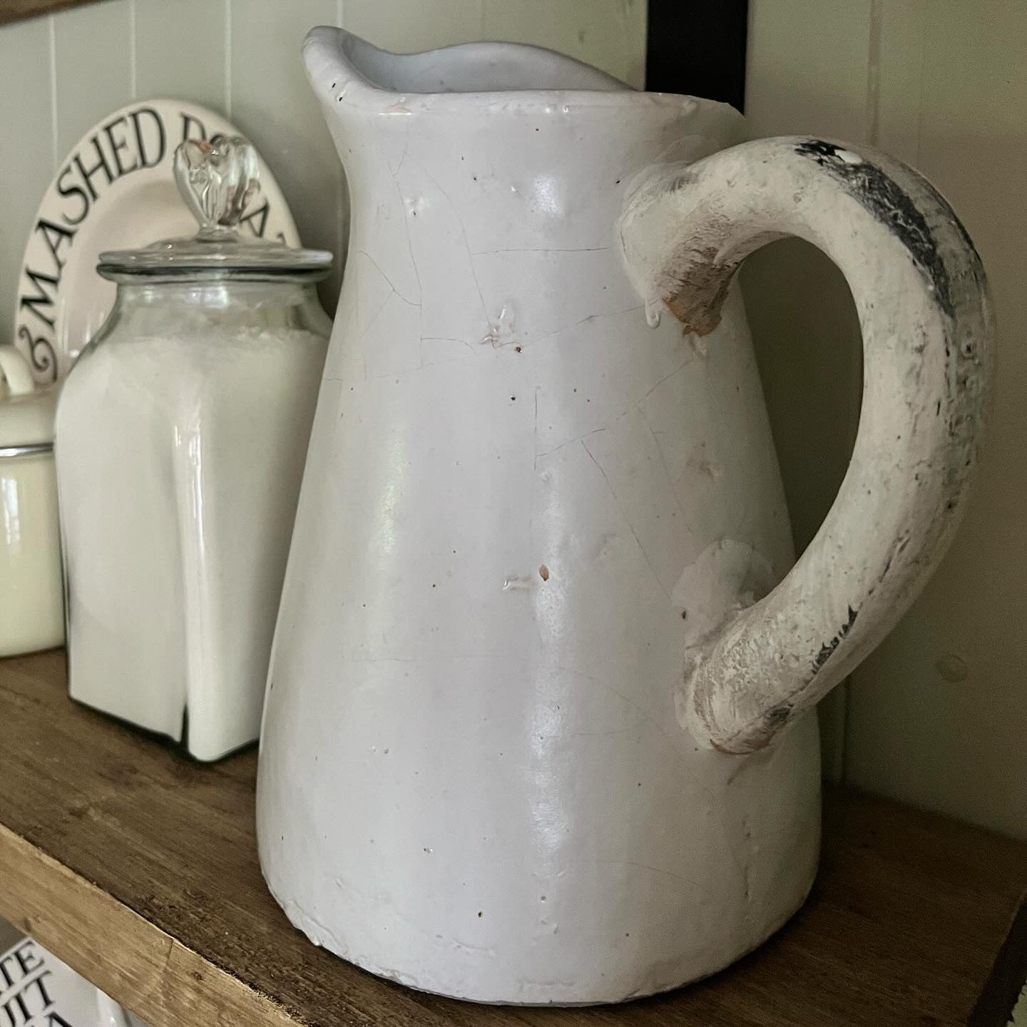 A solid heavy cream jug made from high-quality stoneware with a distressed crackle glaze design. This is an extremely sturdy heavy jug perfect for displaying on its own or for holding some of our faux flowers. A decorative statement piece to suit all decor styles.
