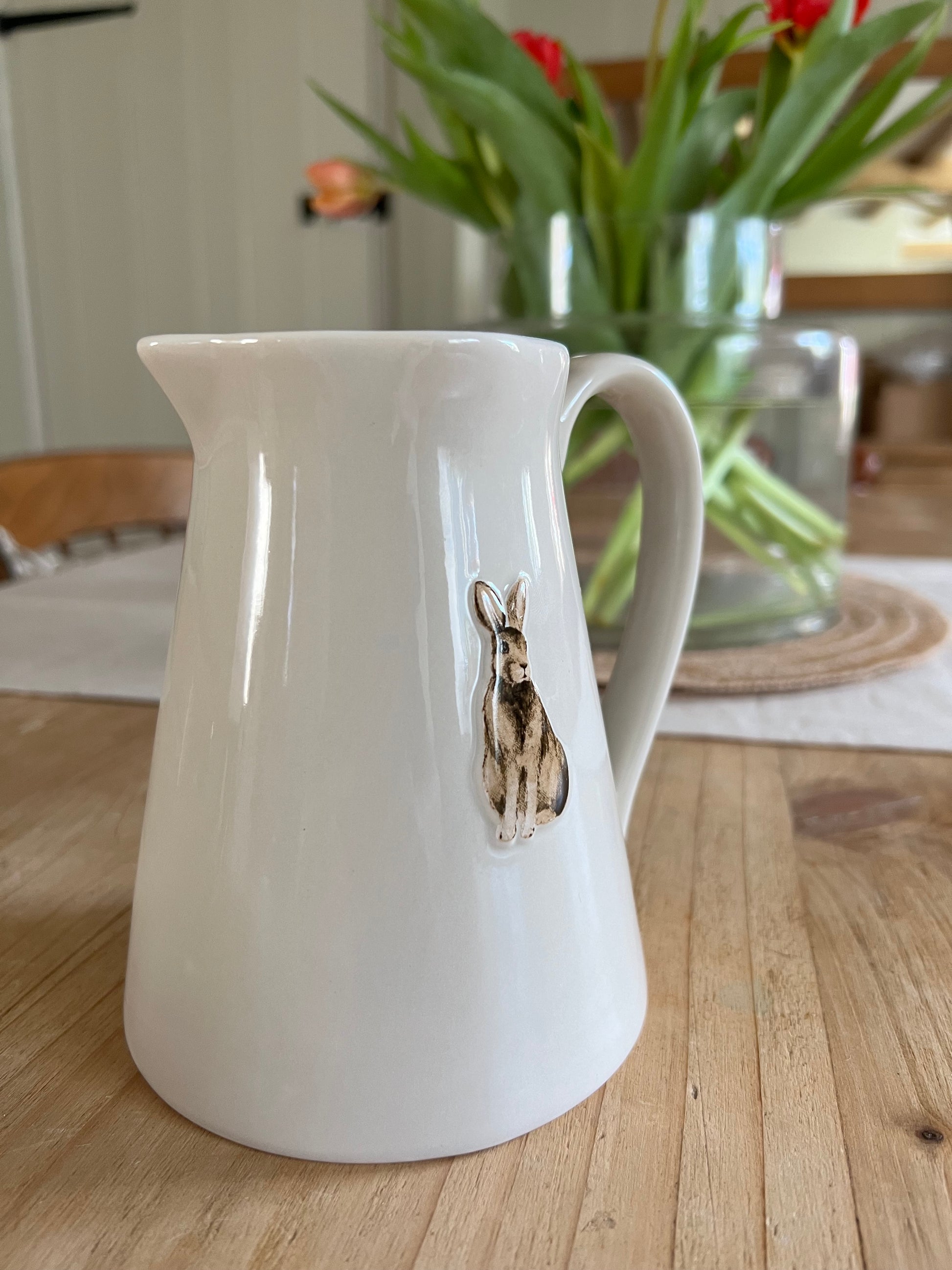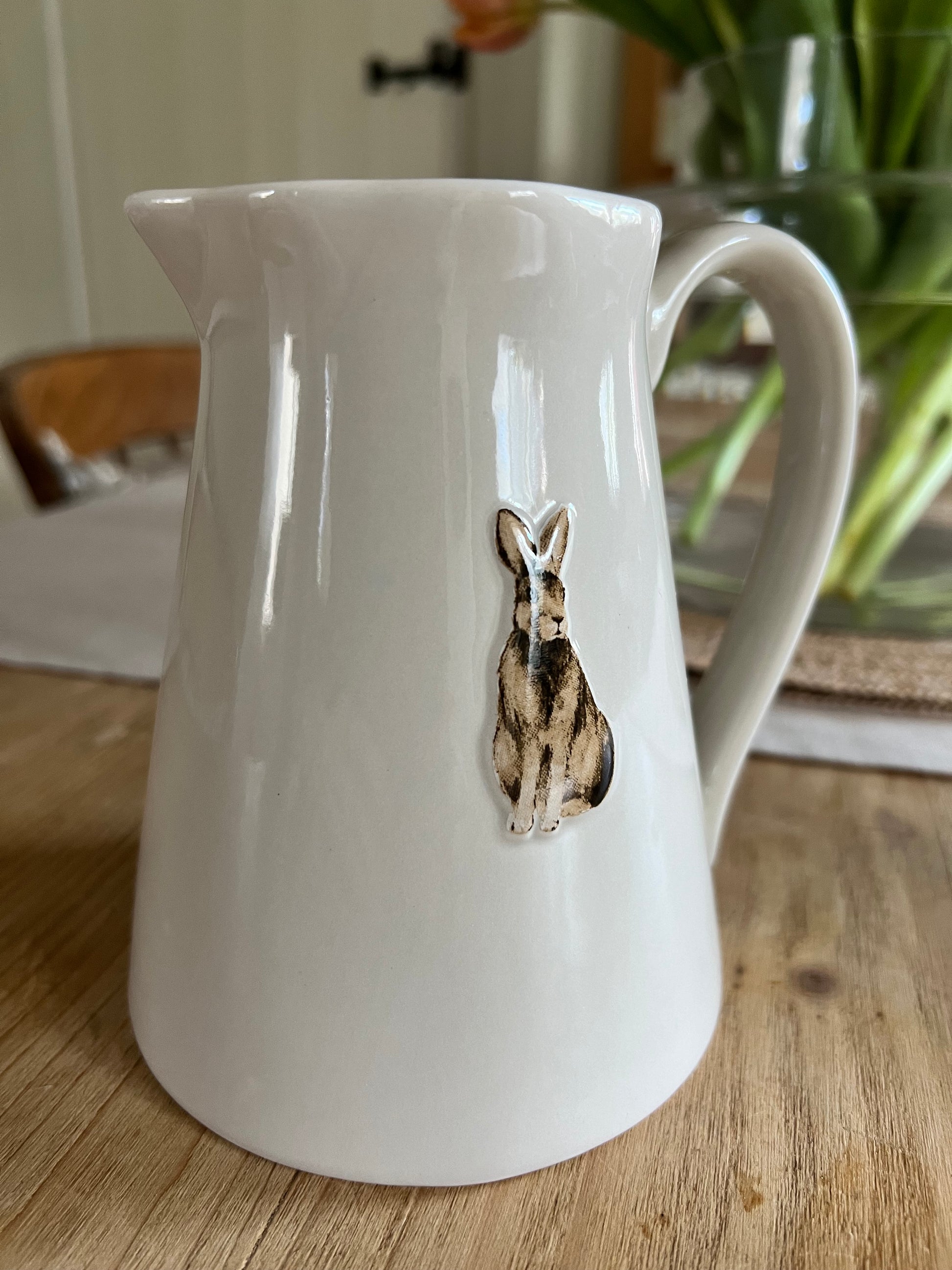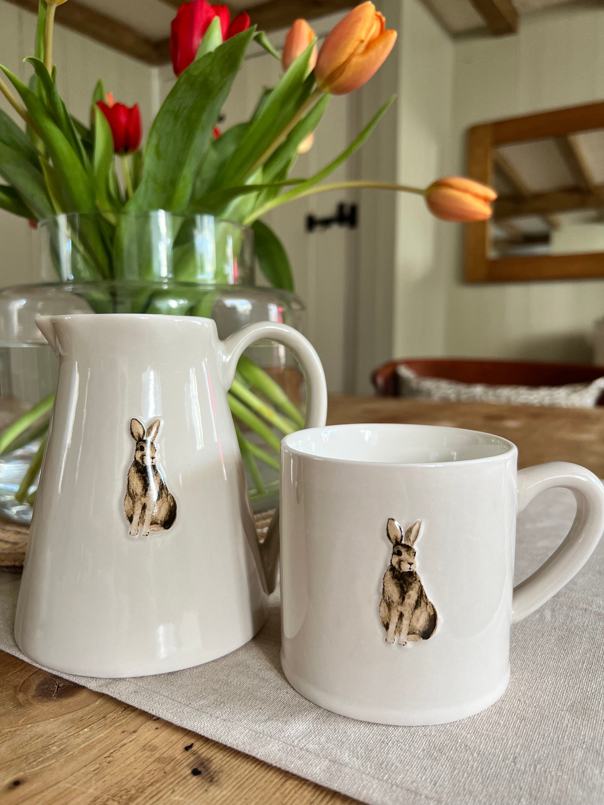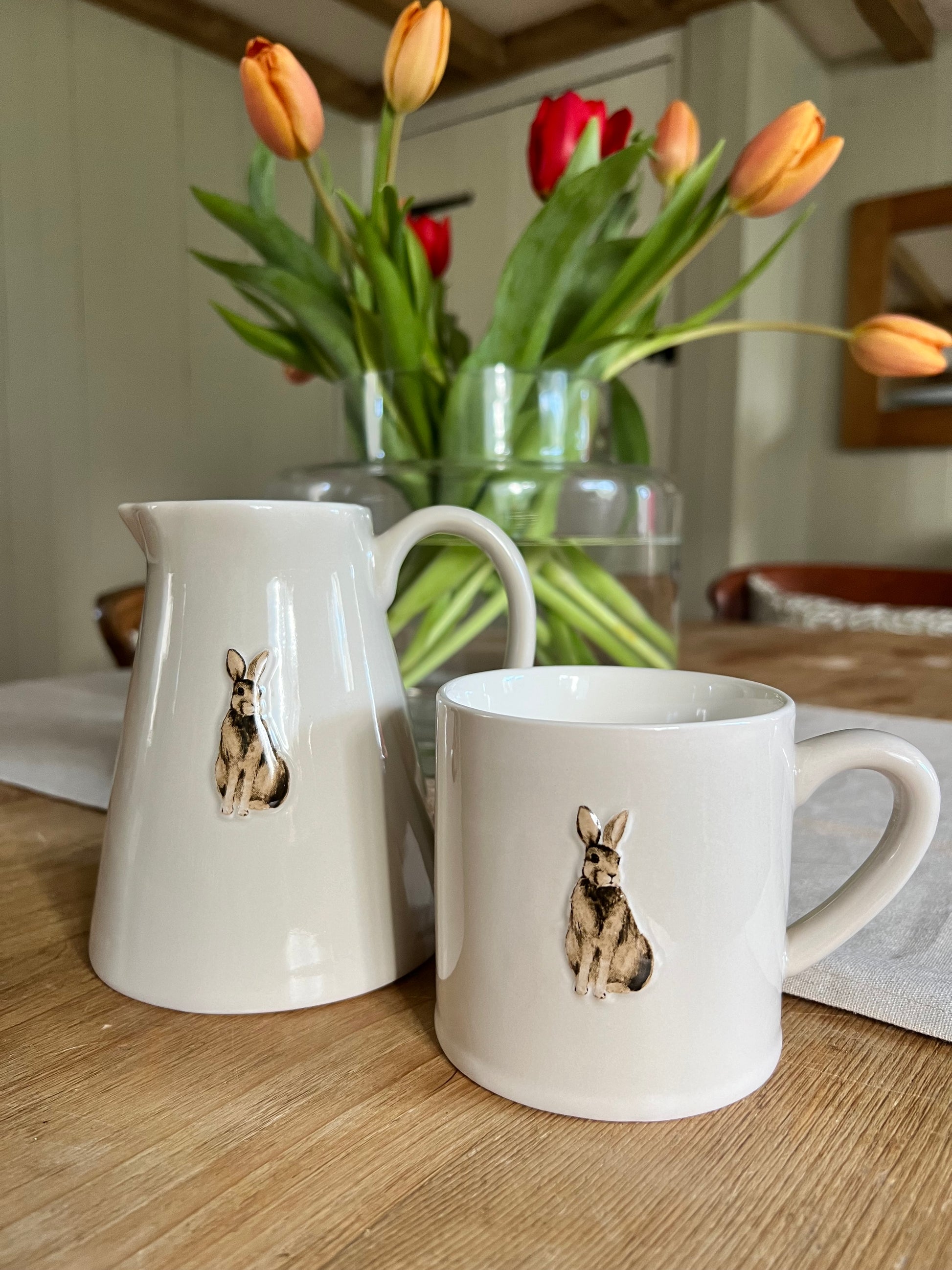 A gorgeous ceramic taupe coloured jug embossed with a lovely sitting hare. Finished with a glossy glaze, this jug is the sweetest home addition especially for fellow hare lovers! Match with our ceramic hare mug.