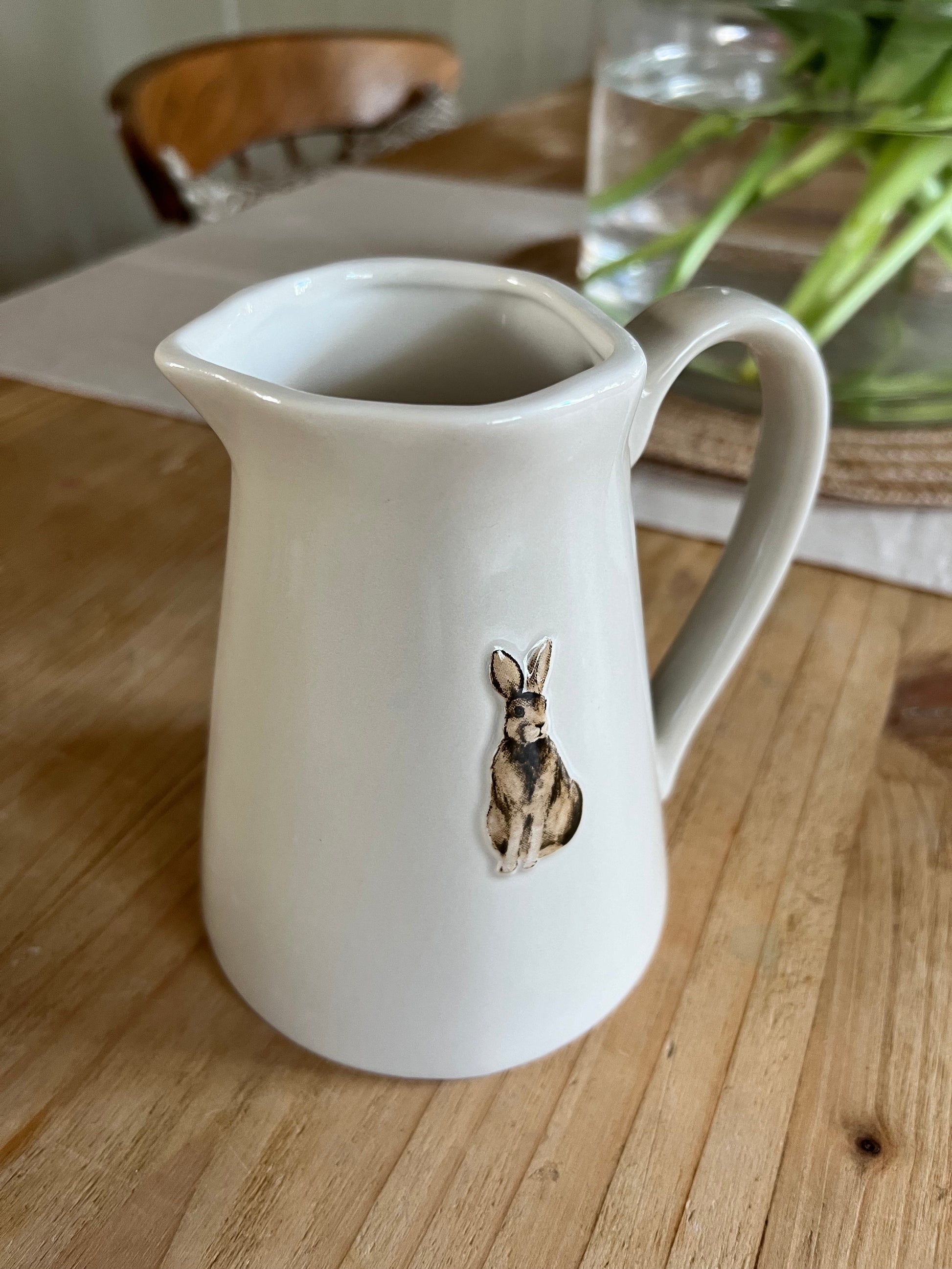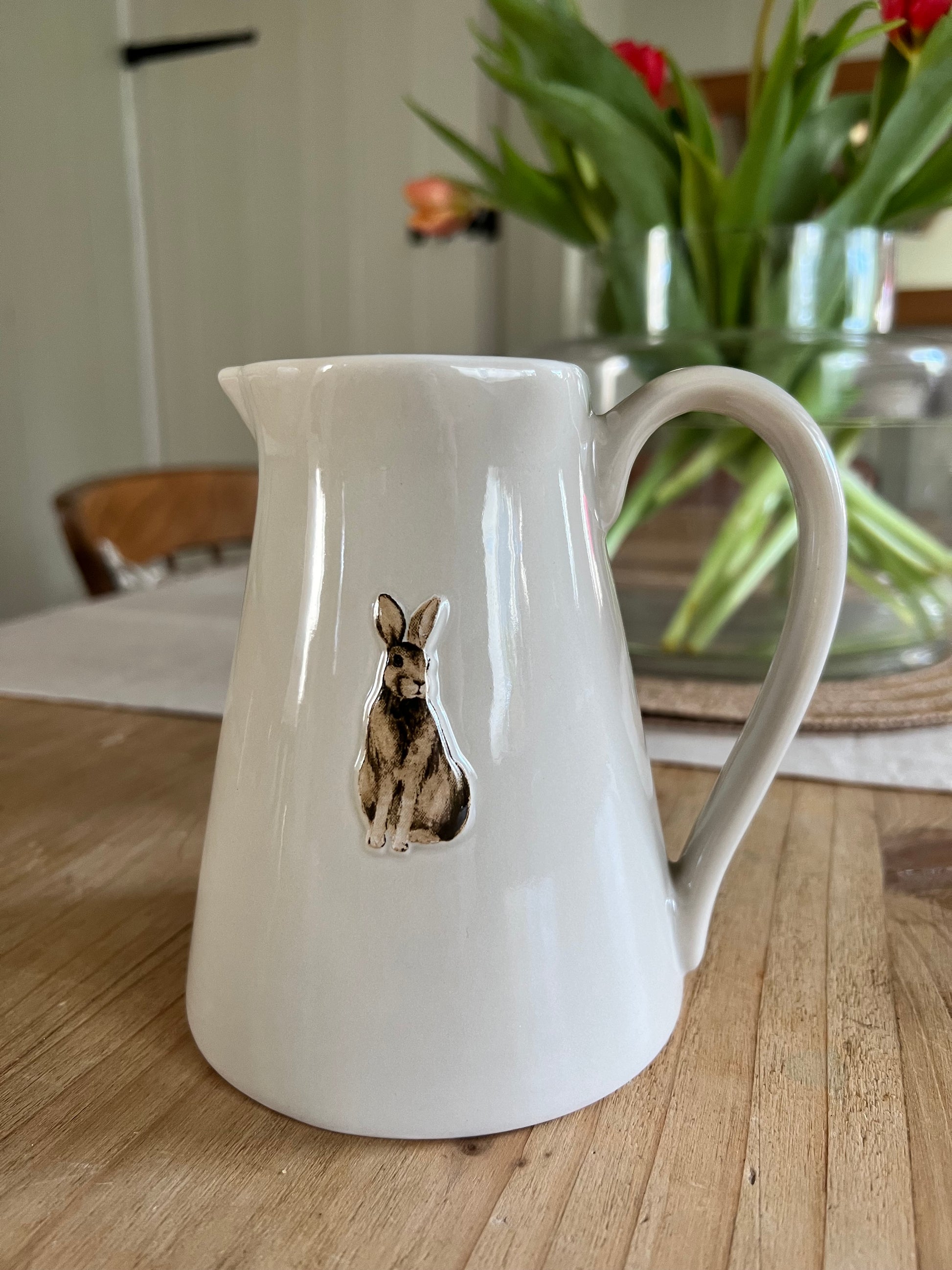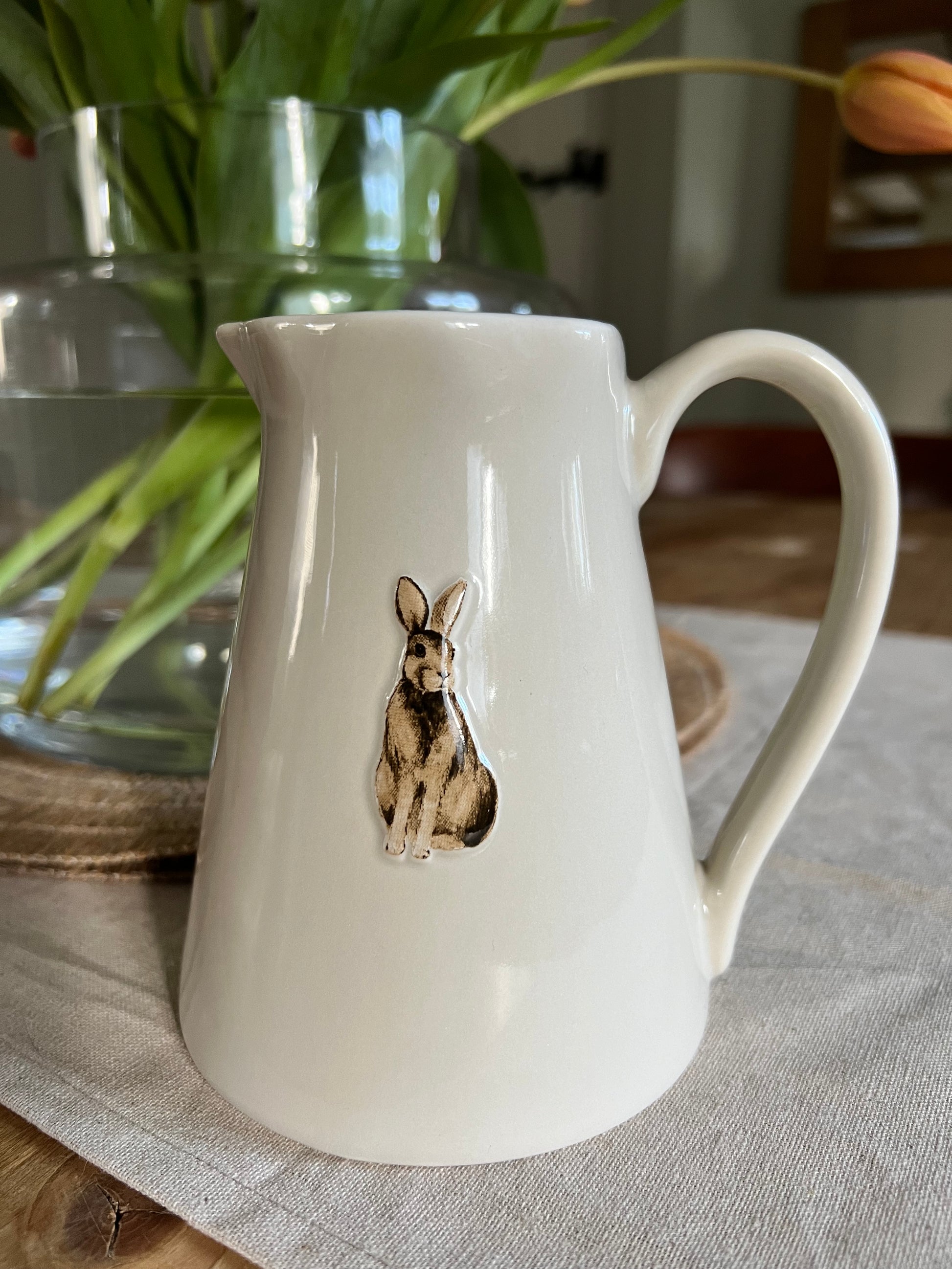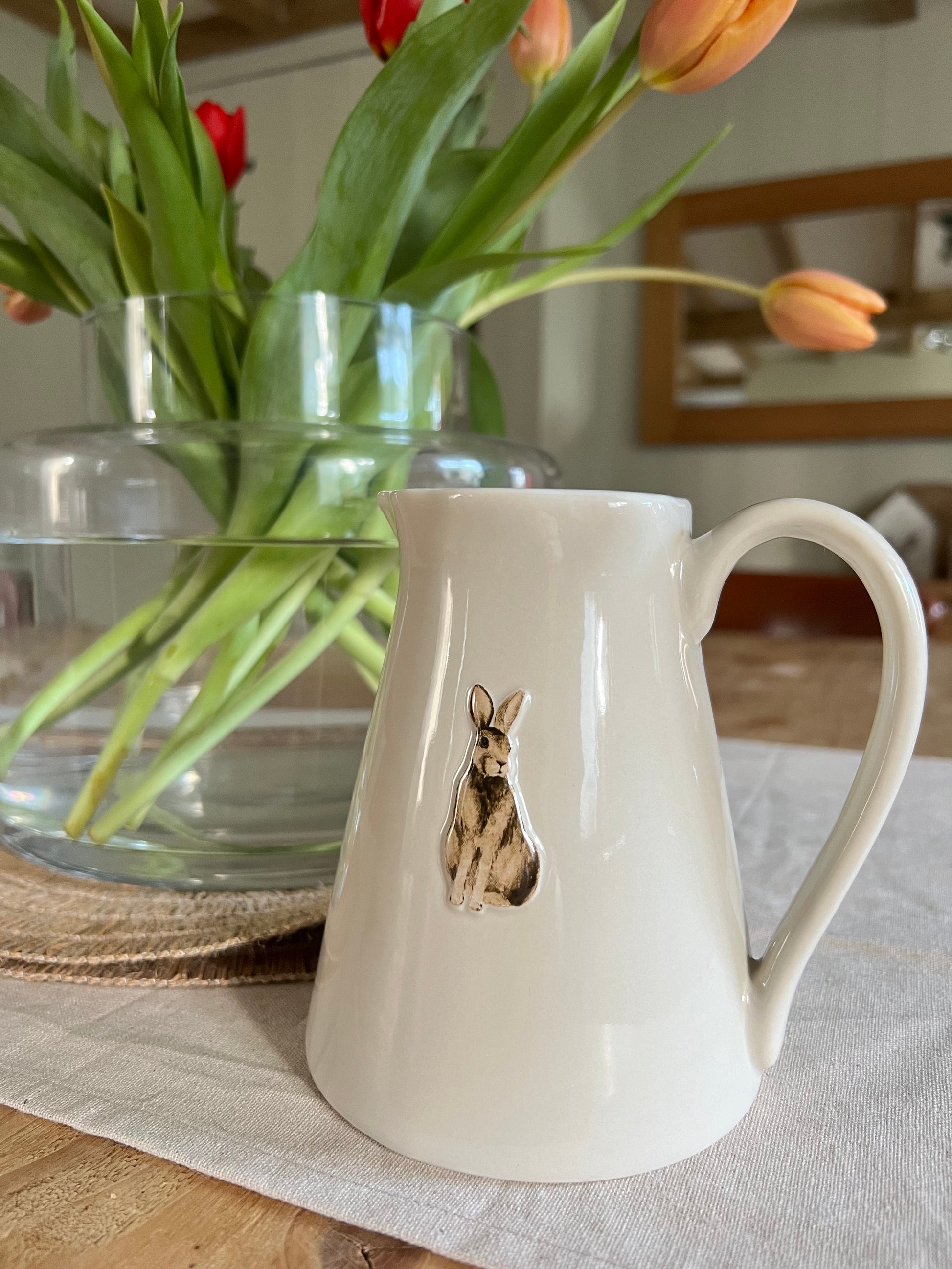 A gorgeous ceramic taupe coloured jug embossed with a lovely sitting hare. Finished with a glossy glaze, this jug is the sweetest home addition especially for fellow hare lovers! Match with our ceramic hare mug.