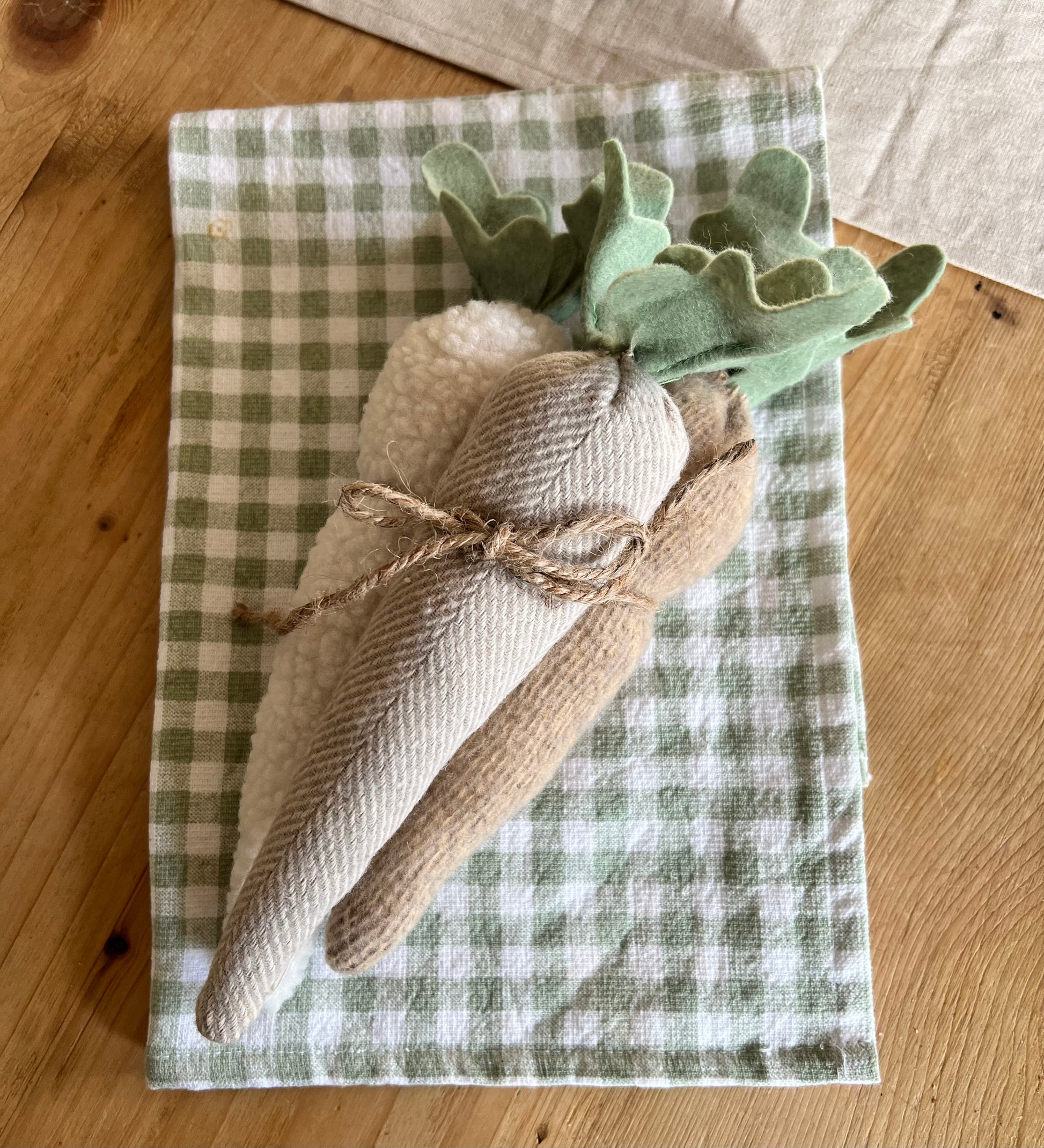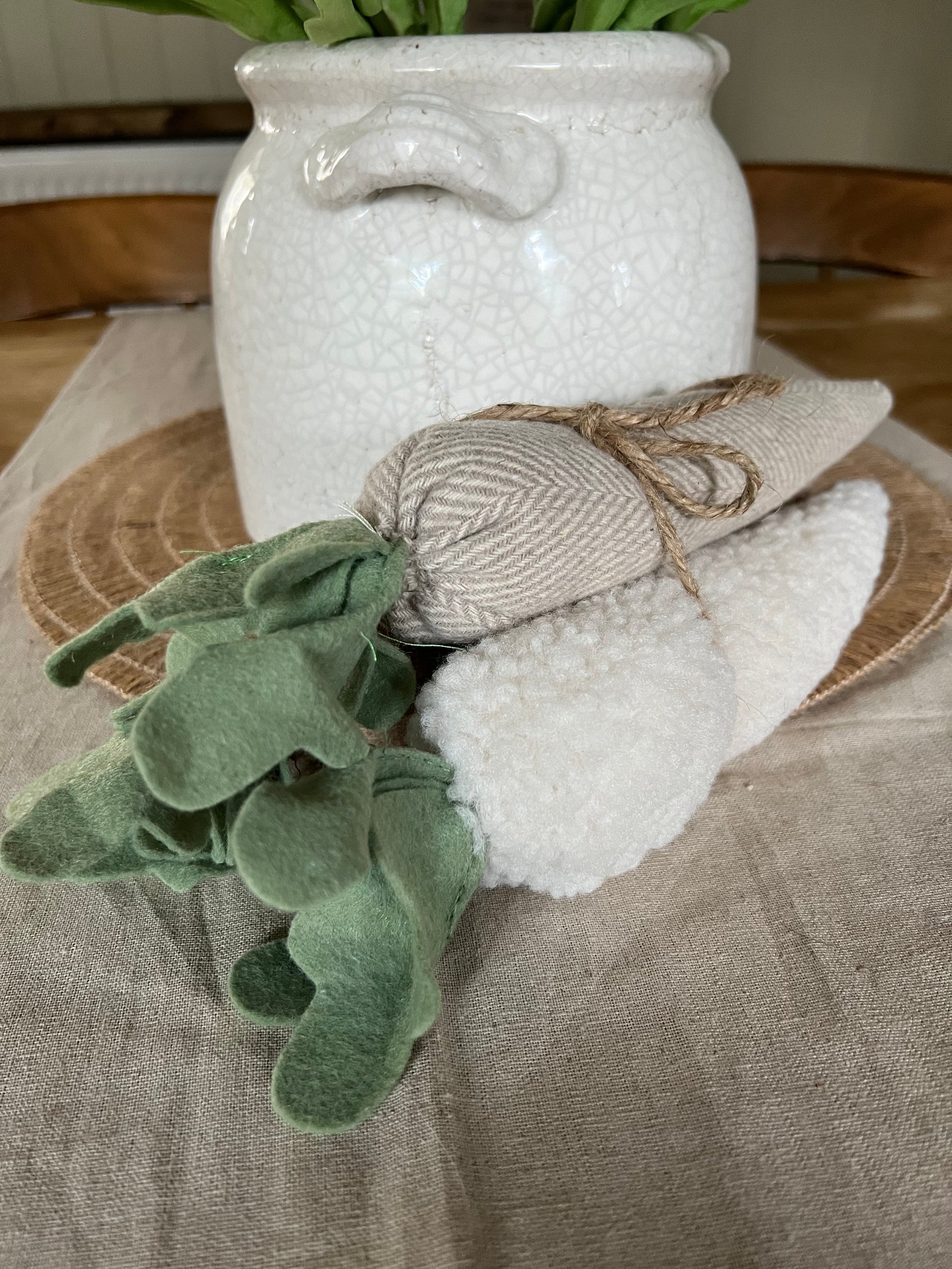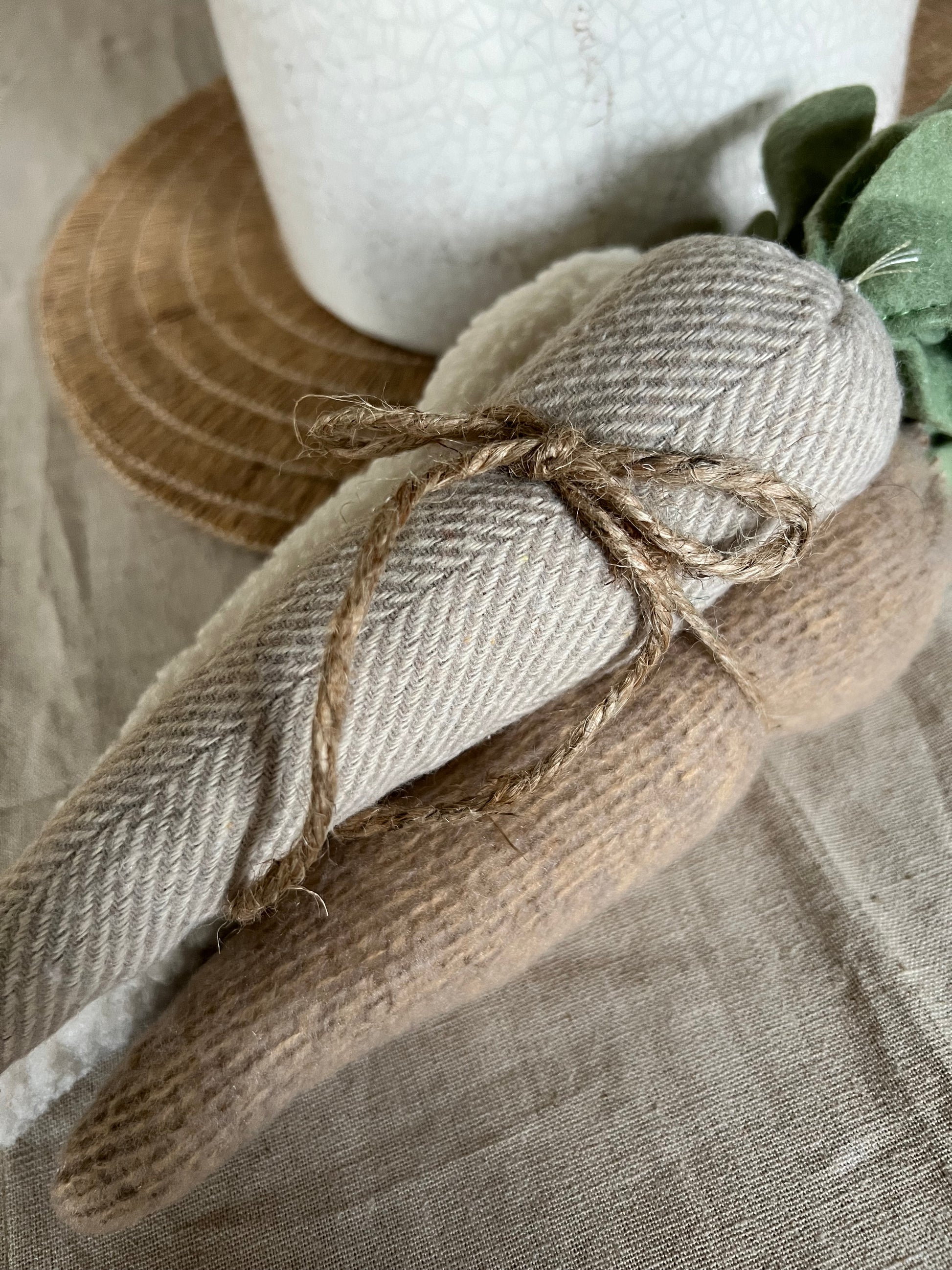 A gorgeous bundle of fabric carrot decorations in an assortment of fabrics and neutral colours. The perfect way to add texture, character, and charm with your Easter and Spring displays.