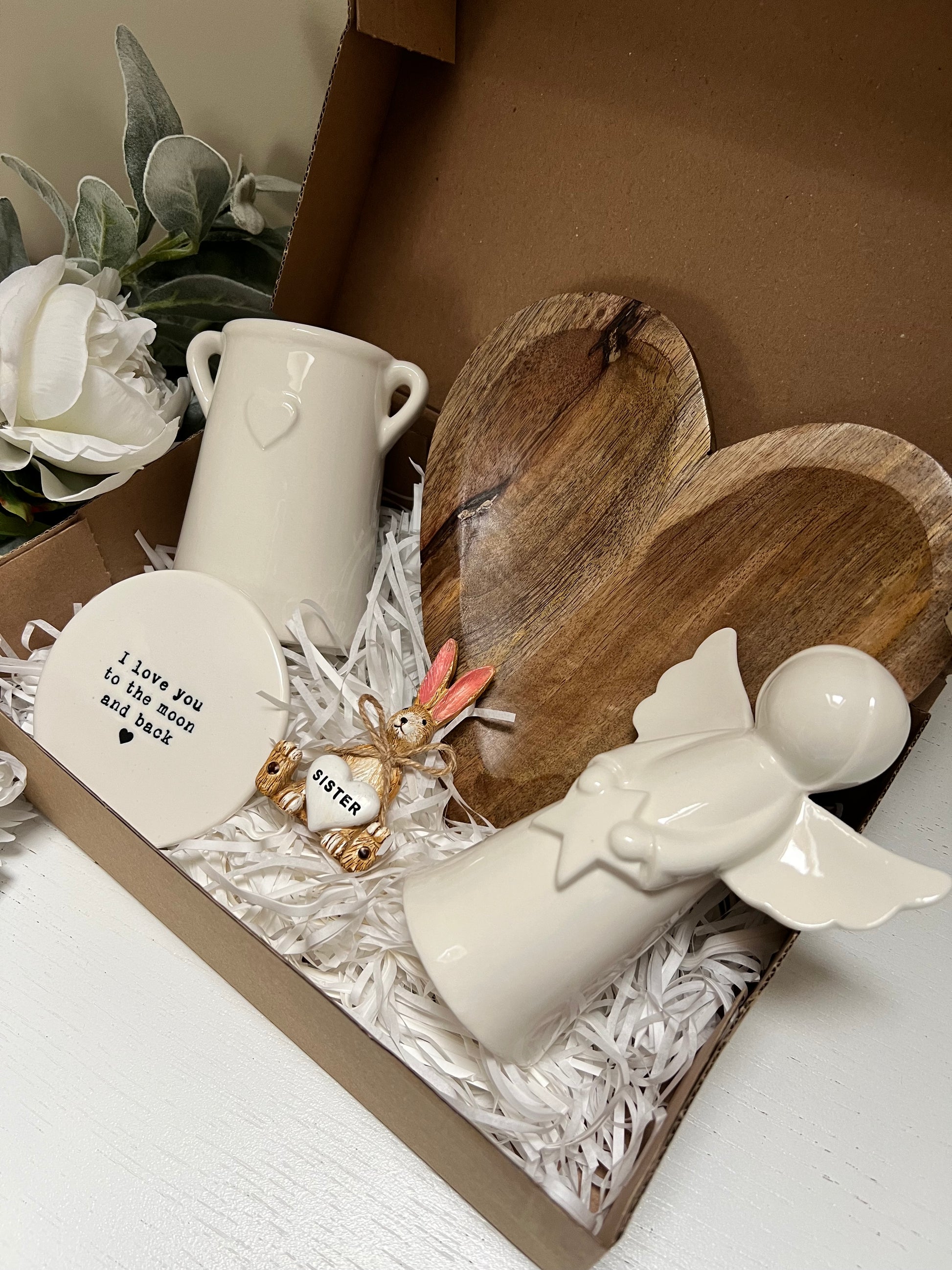 Looking for the perfect gift for your Sister who loves home decor? Our Sister Gift Box has everything they need to add a personal touch to their space! This gift box is a beautiful way to show your appreciation and give them something they’ll cherish for their home. Perfect for birthdays, housewarmings, or just because!