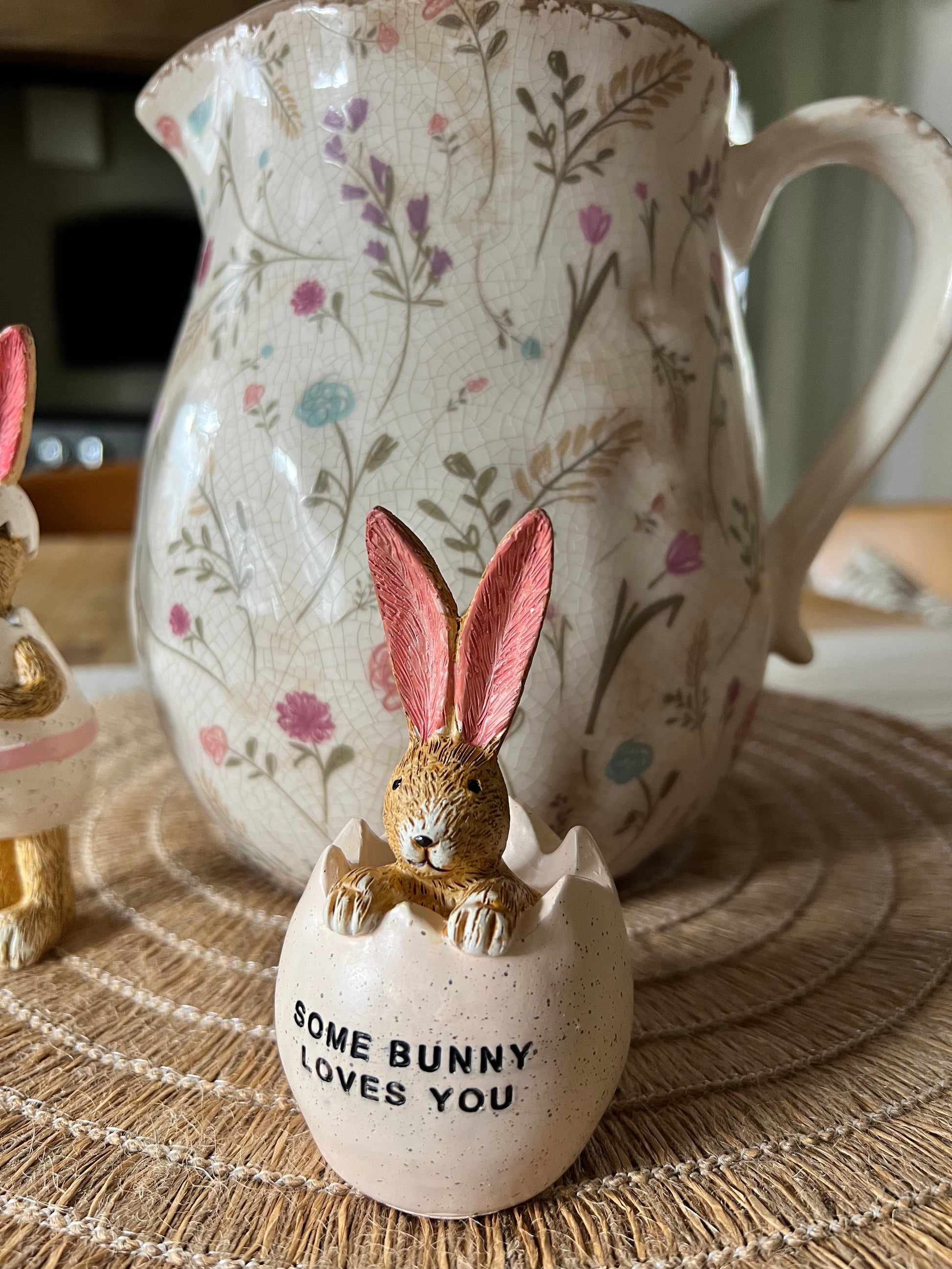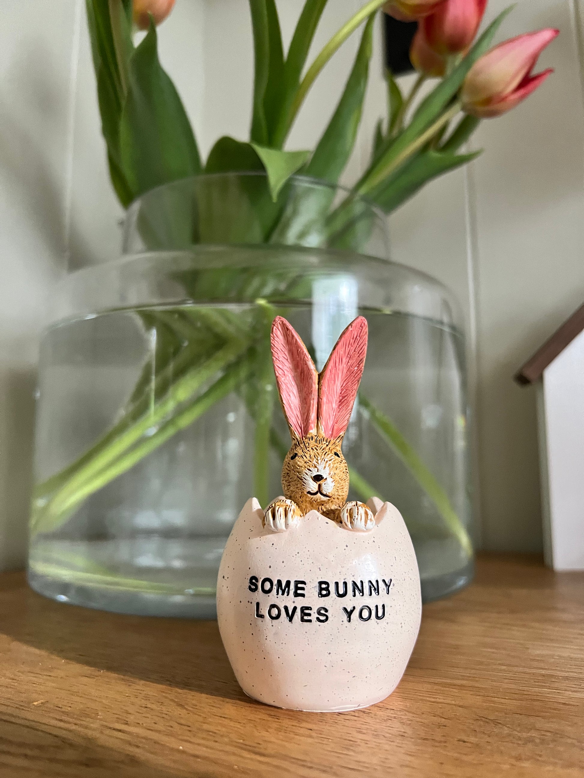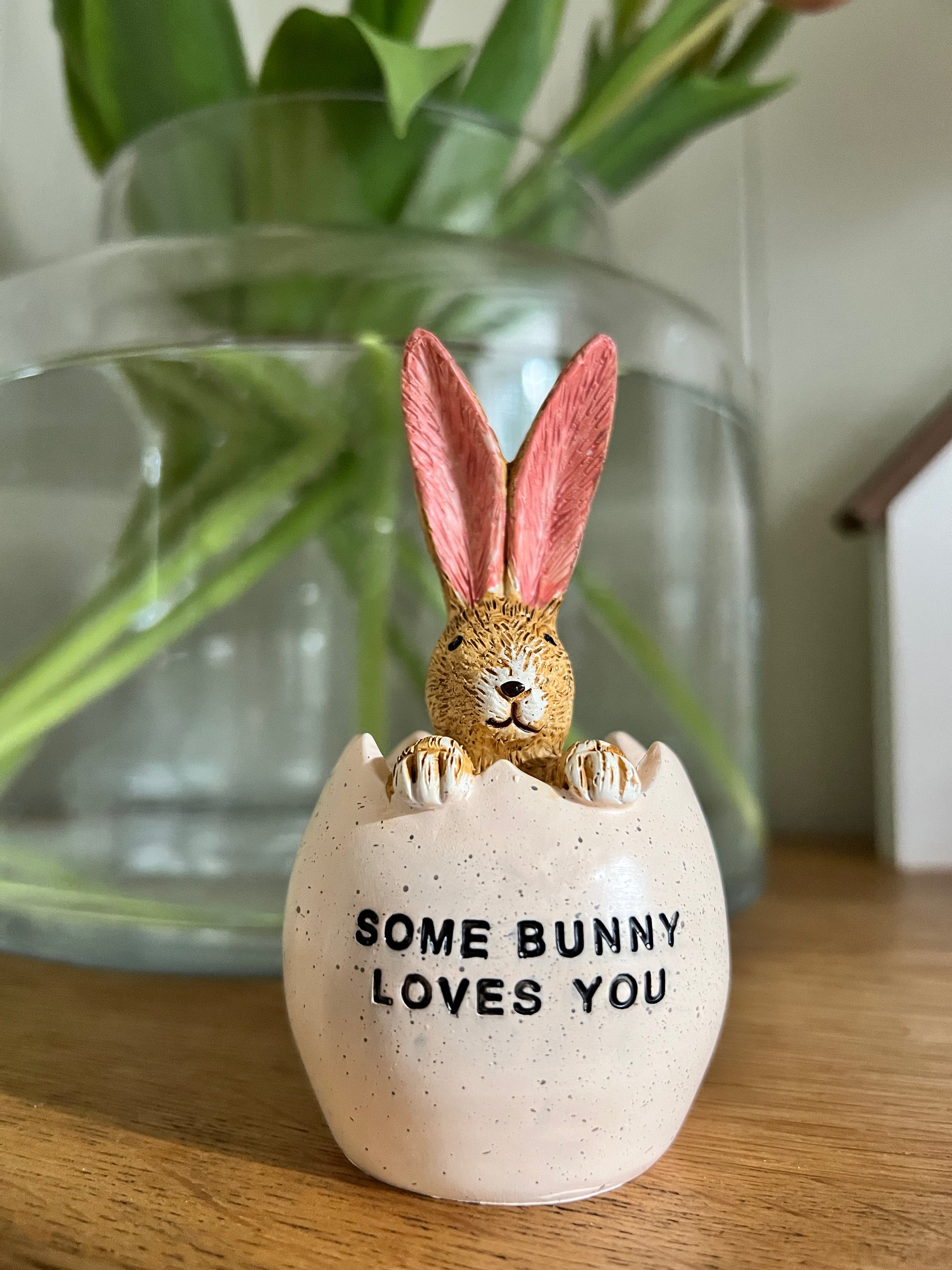 An adorable bunny peeping out of an Easter egg. The sweetest Spring decoration that would make a lovely gift. Why not pair it with our other resin bunny.