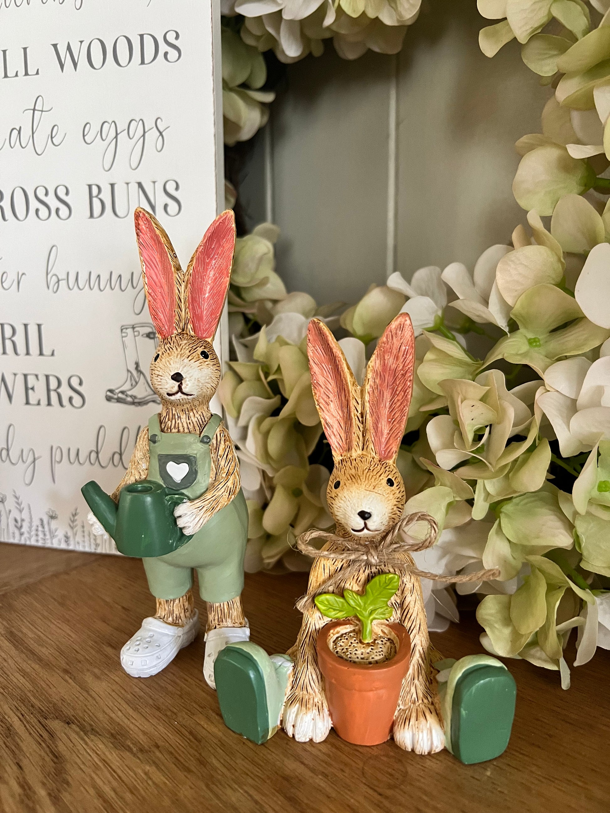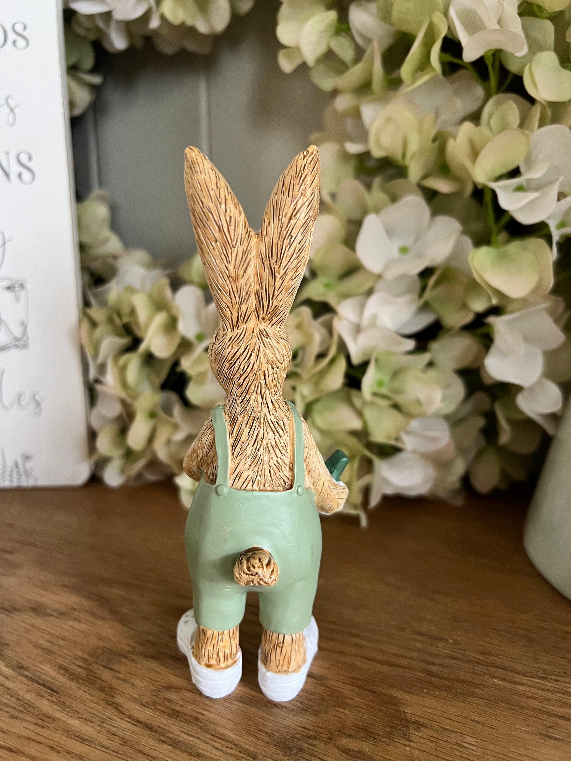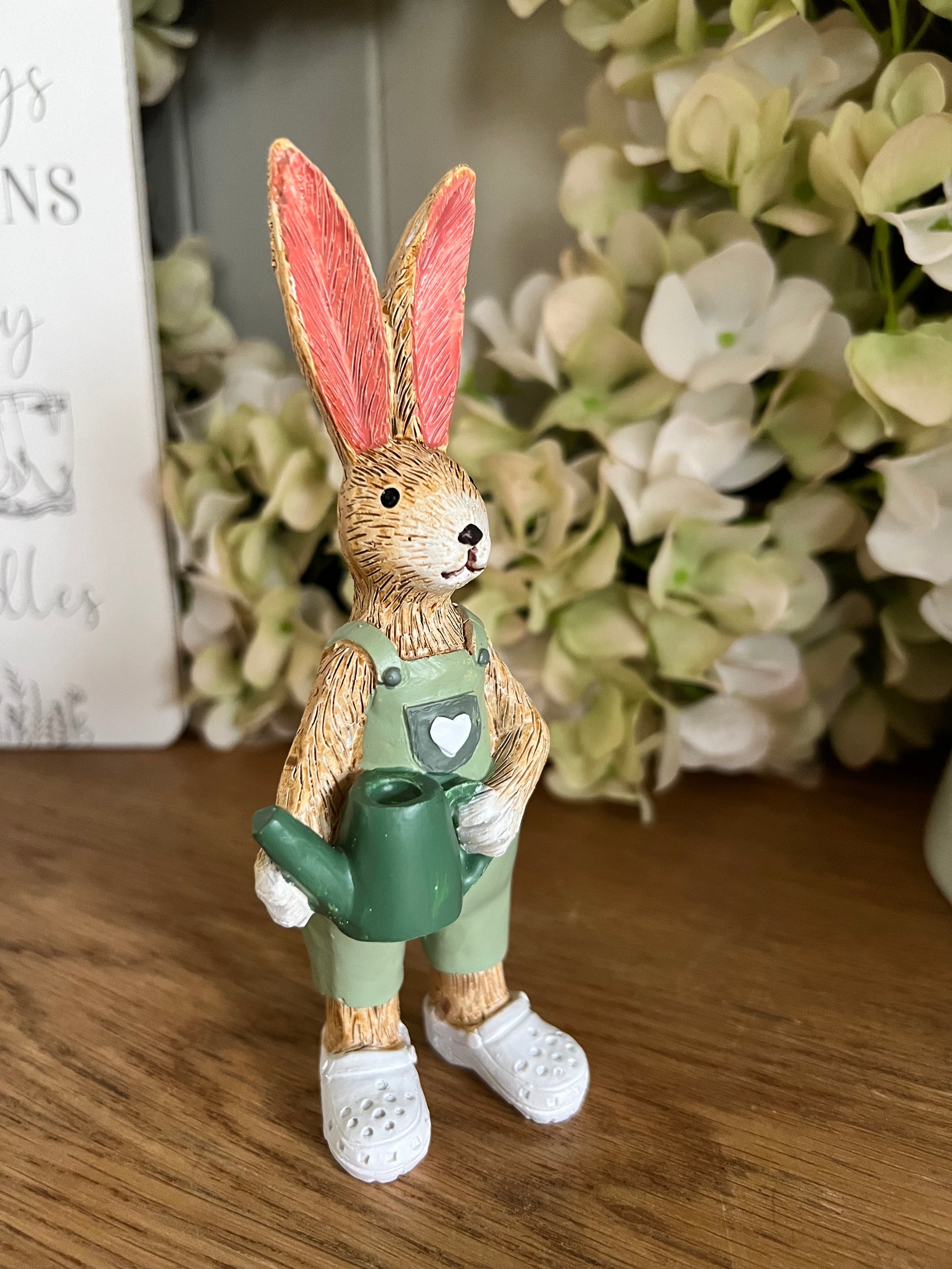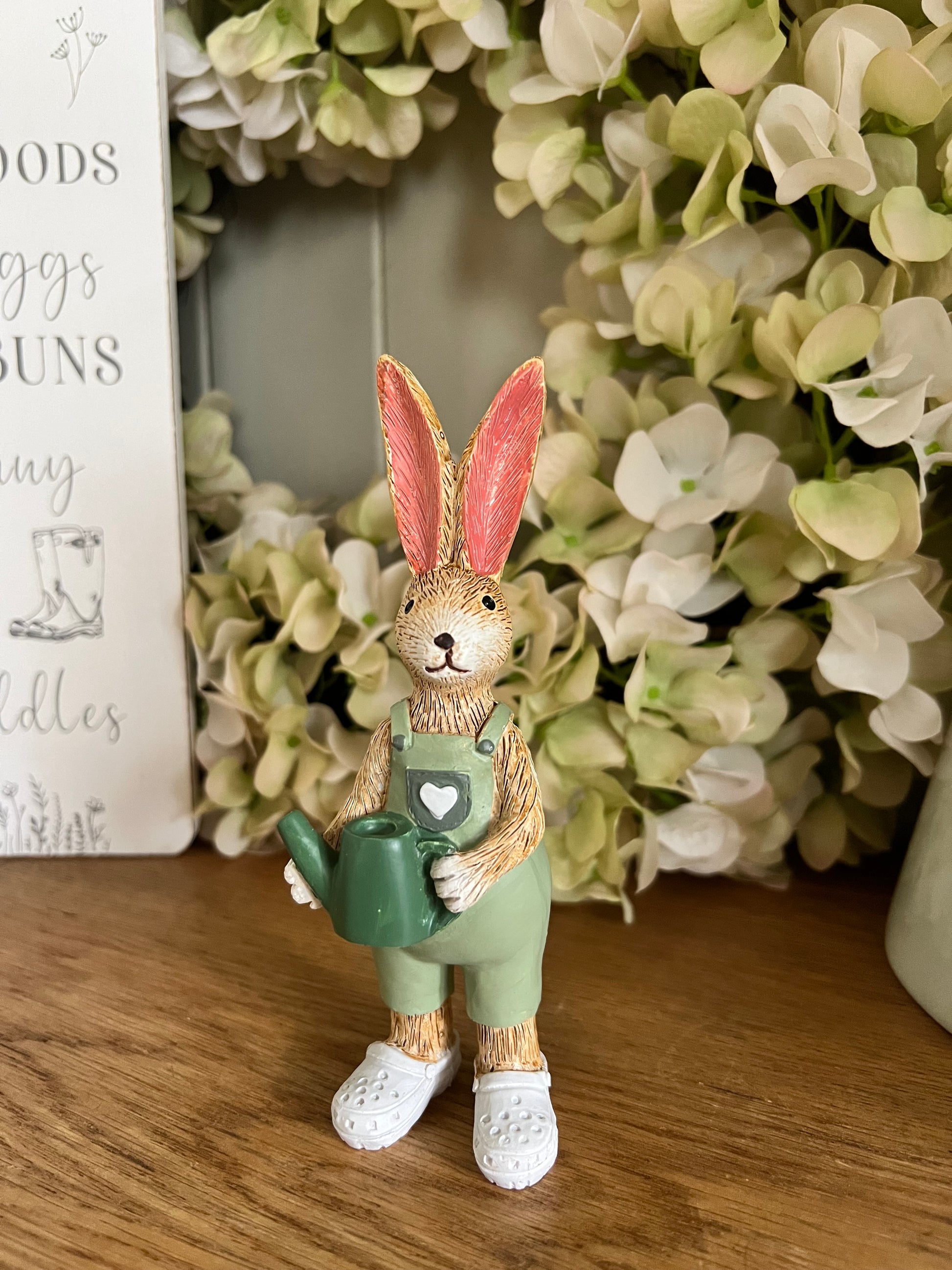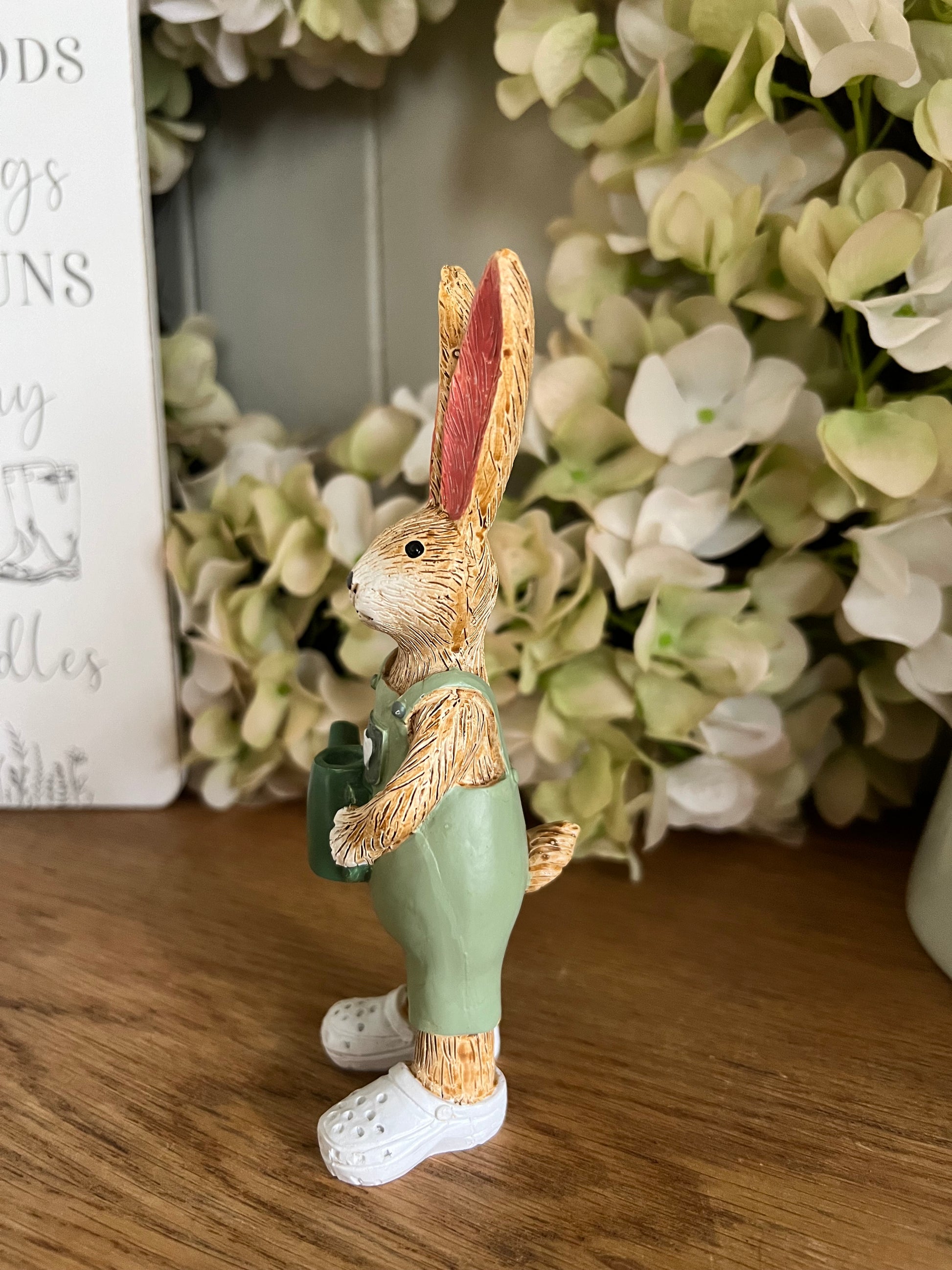 Every occasion calls for a bunny ornament, including gardening! Add to your charming collection with this sweet green fingered garden bunny with unique details such as dungarees, gardening clogs, and a watering can. So cute it is a must have! Or the perfect gift for a loved one that enjoys gardening.