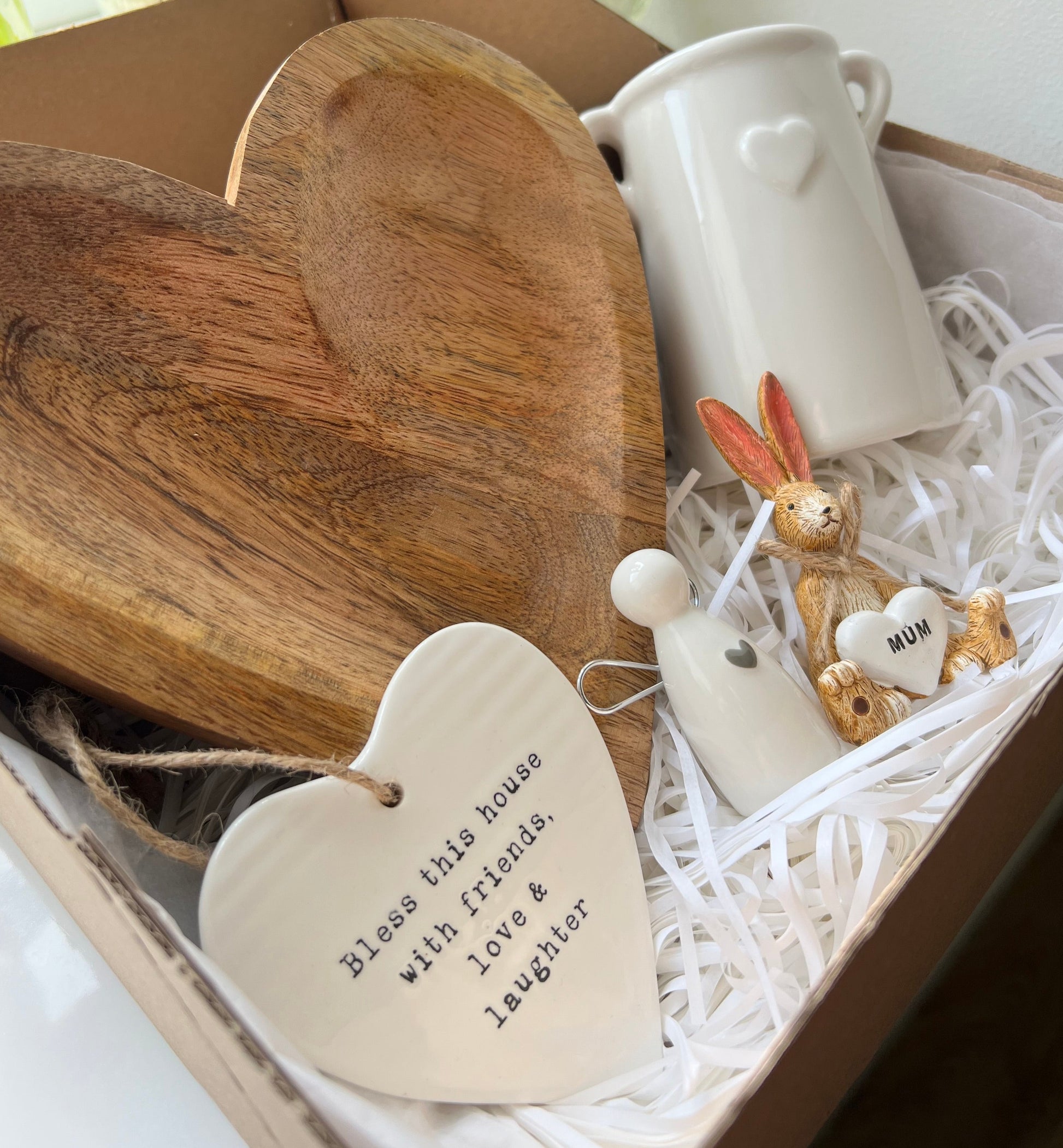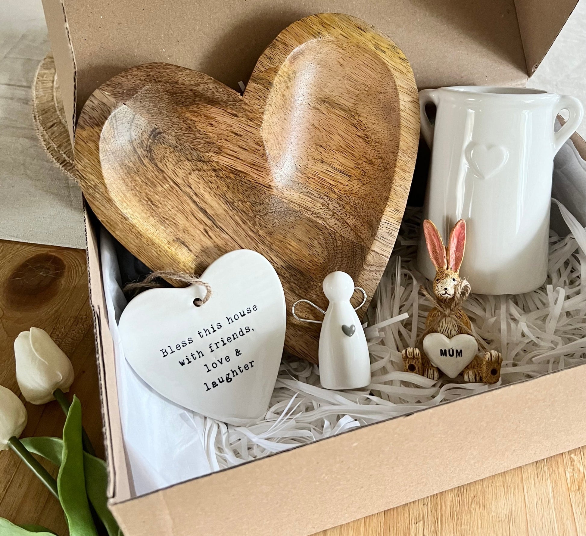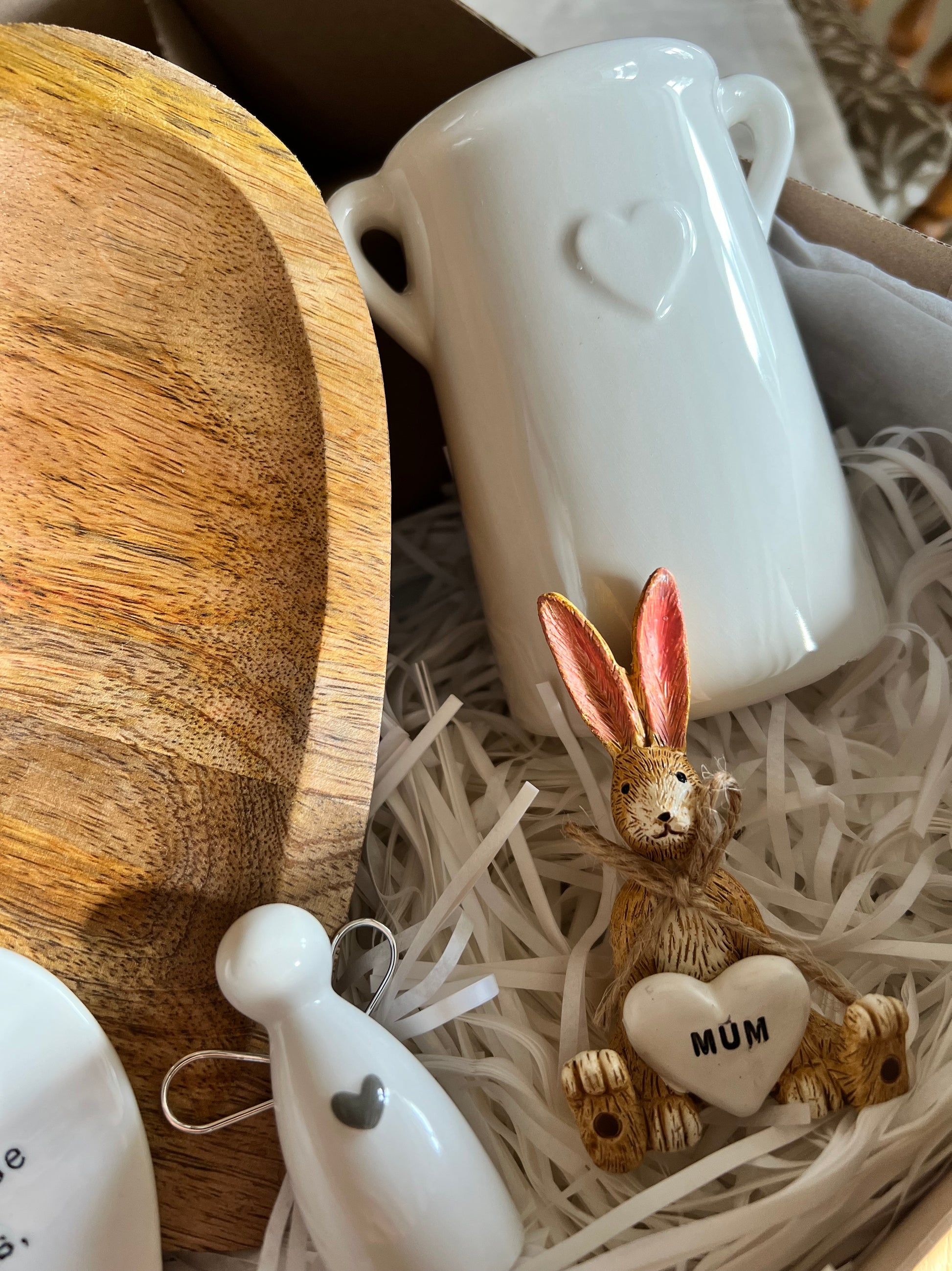A lovely Mother’s Day Gift box full of gorgeous home decor items. The perfect gift that includes a mix of ceramic and wooden pieces suited to fit all decor styles. Beautifully gift wrapped ready to pass on to your lovely Mum’s this Mother’s Day.