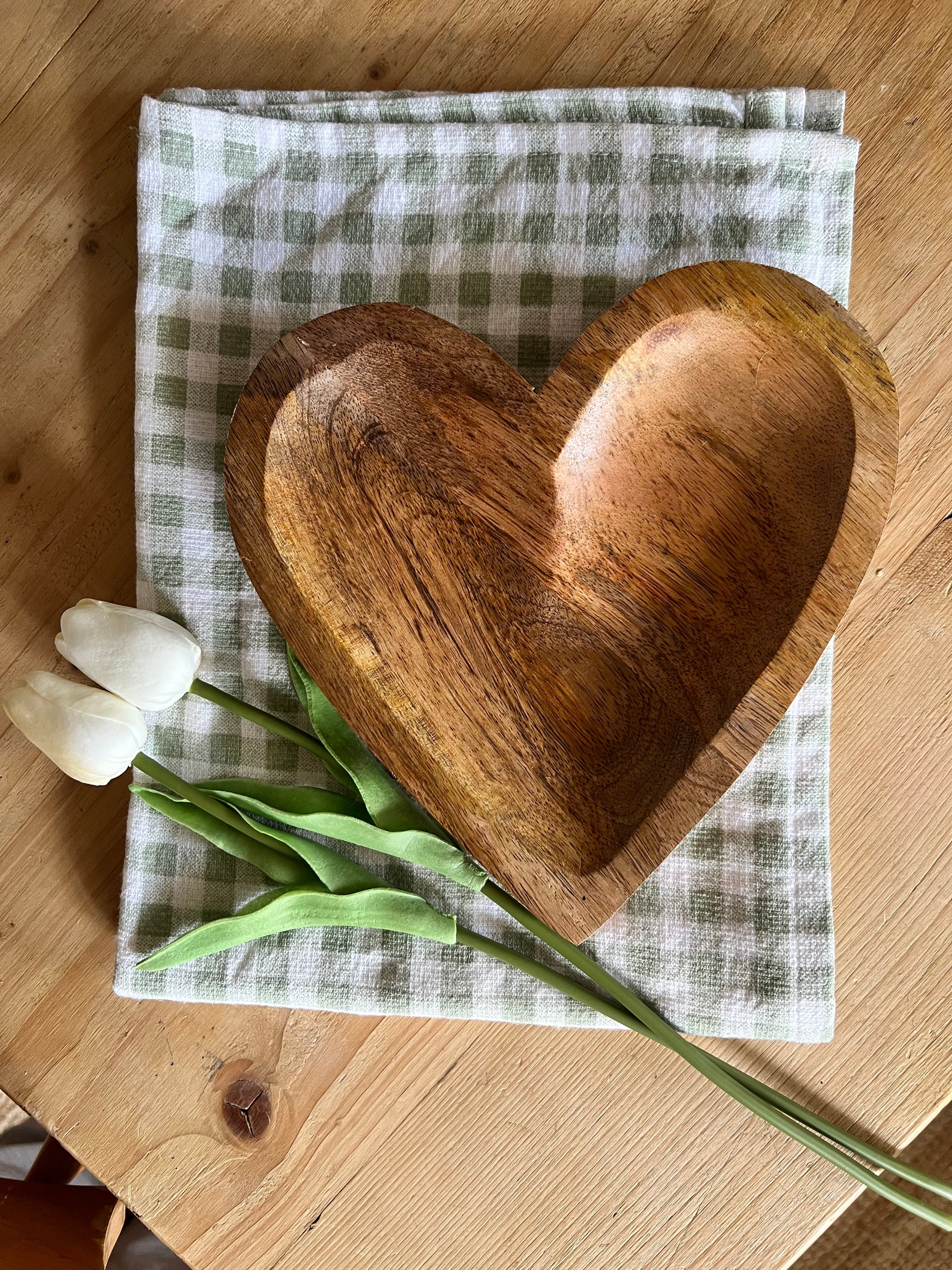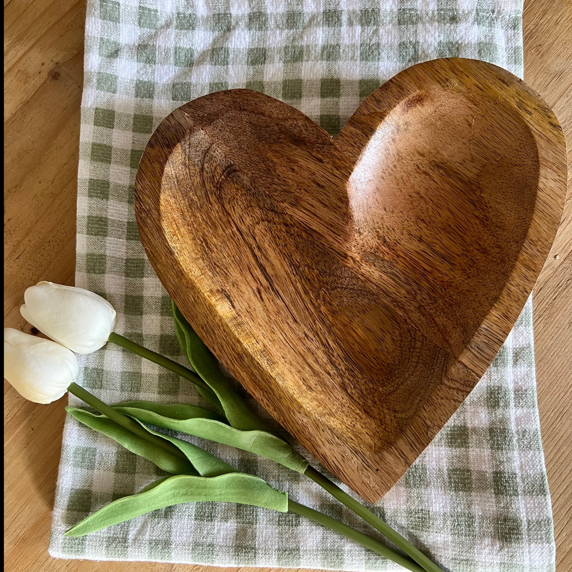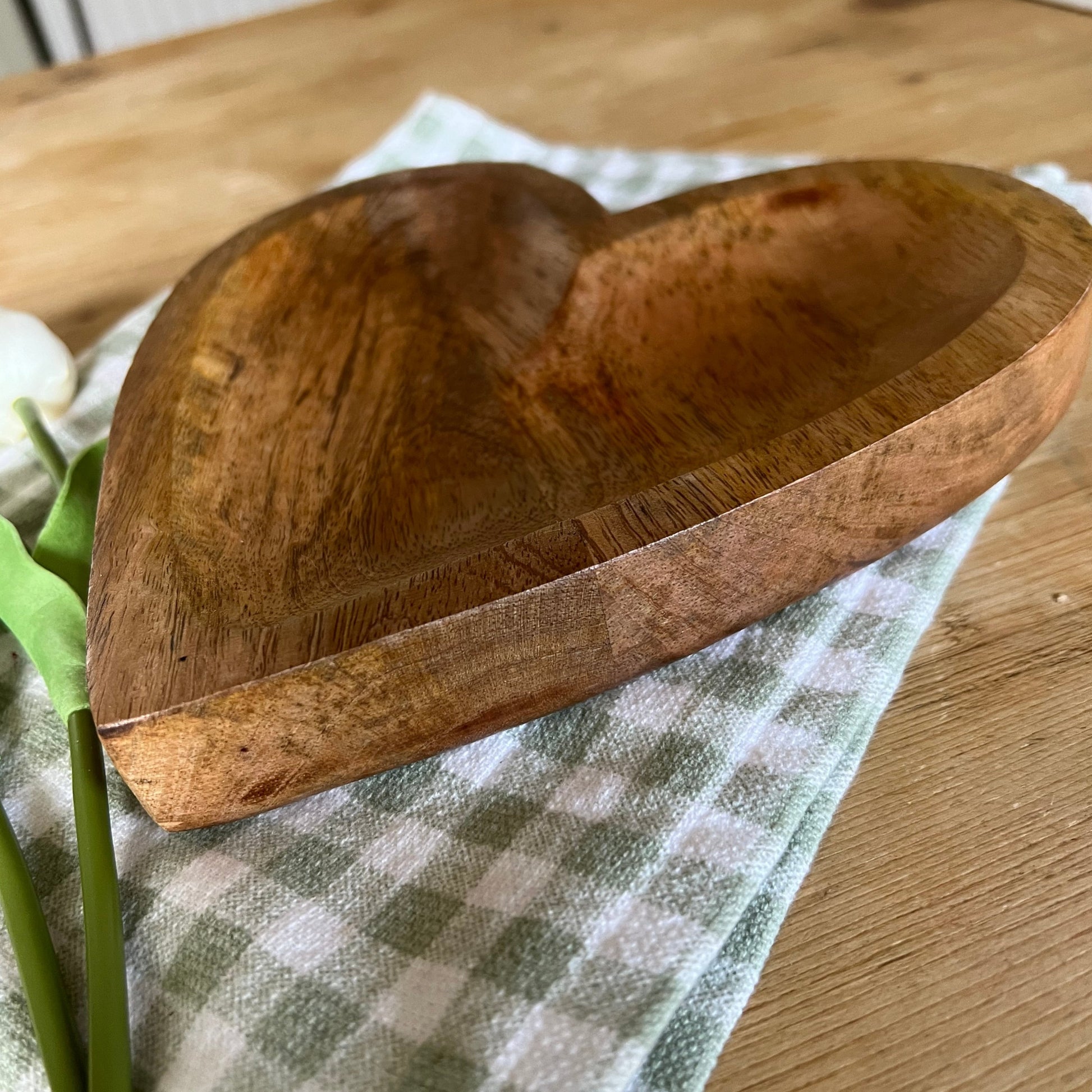 A large natural wooden heart dish perfect to use as a trinket dish or simply to put on display.