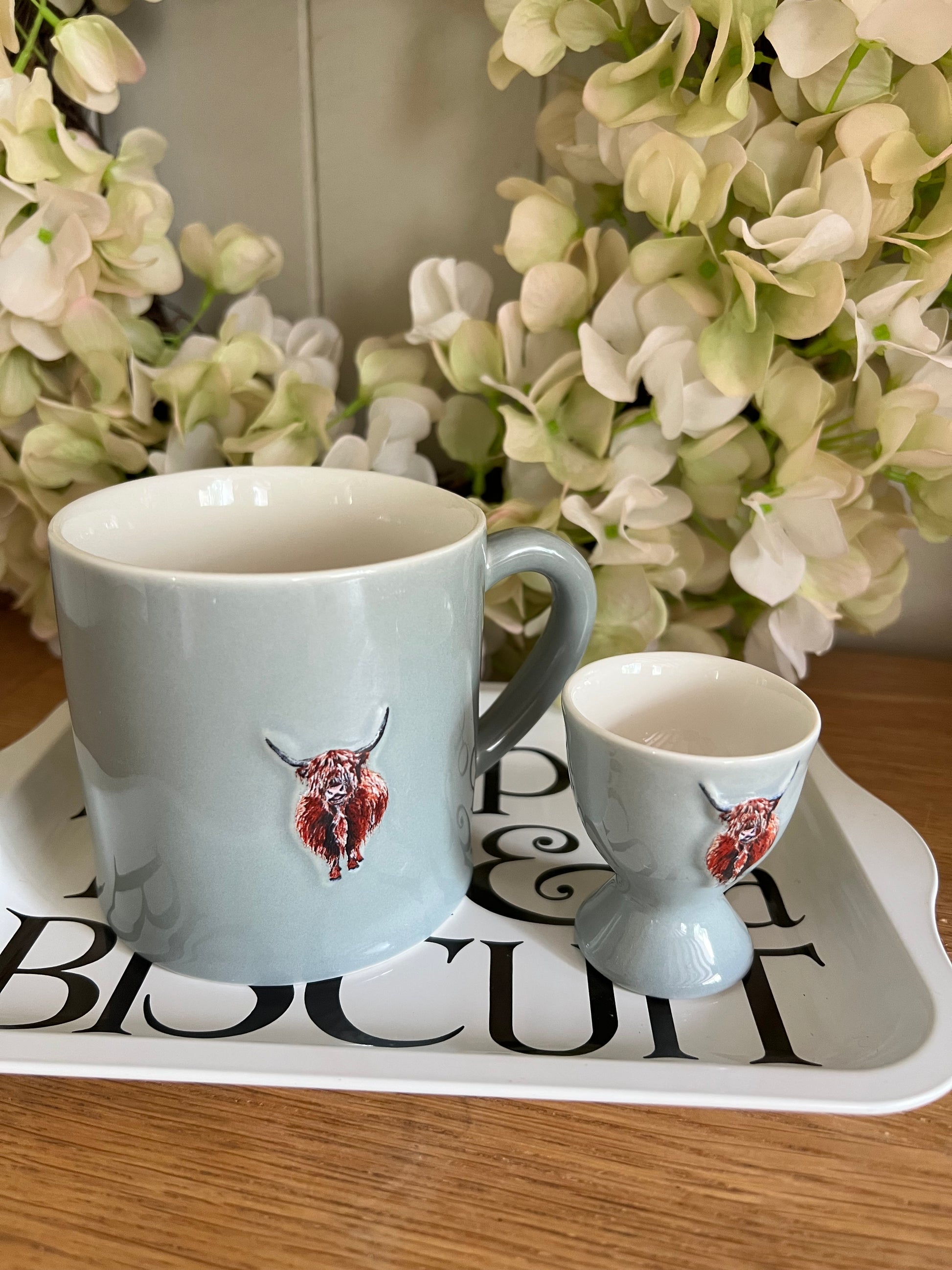 A gorgeous pale green egg cup embossed with a highland cow. Matches with our highland cow mug!